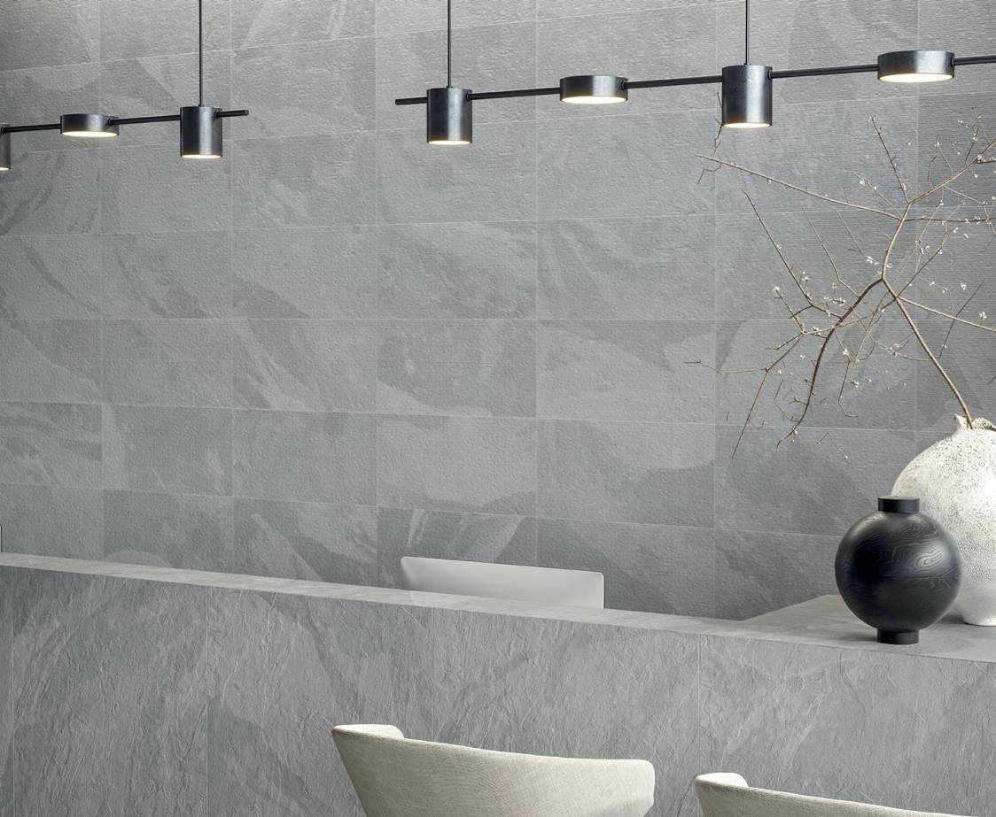 scratched finish that blends the elegance of natural stone with a 3D surface effect. The brushed and hammered embossed texture creates special plays of light and shadow, along with surface scratches, enhancing the decorative added value of the product.